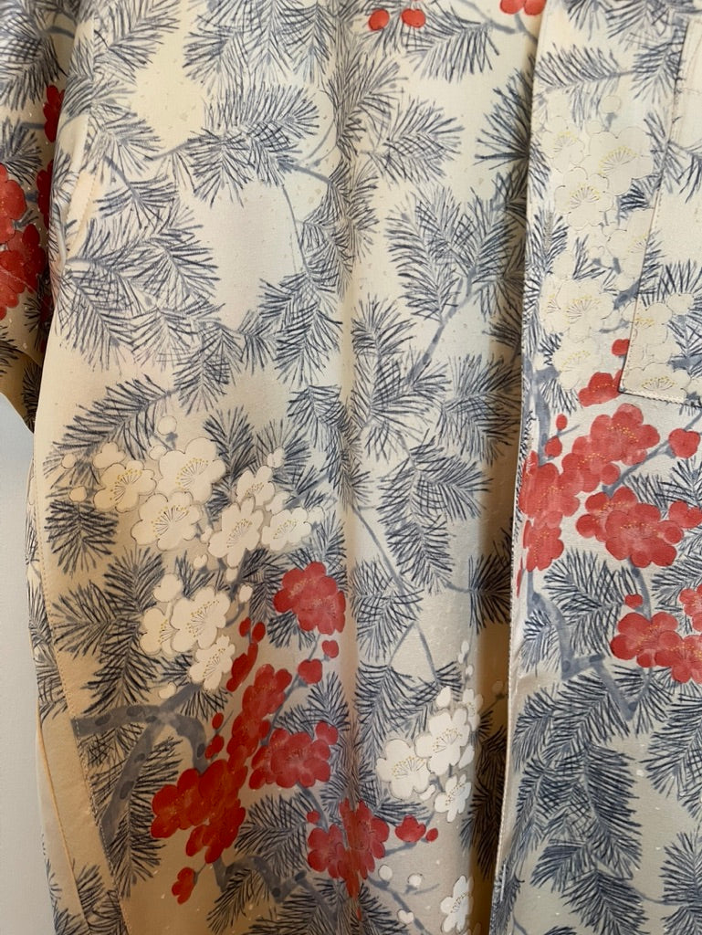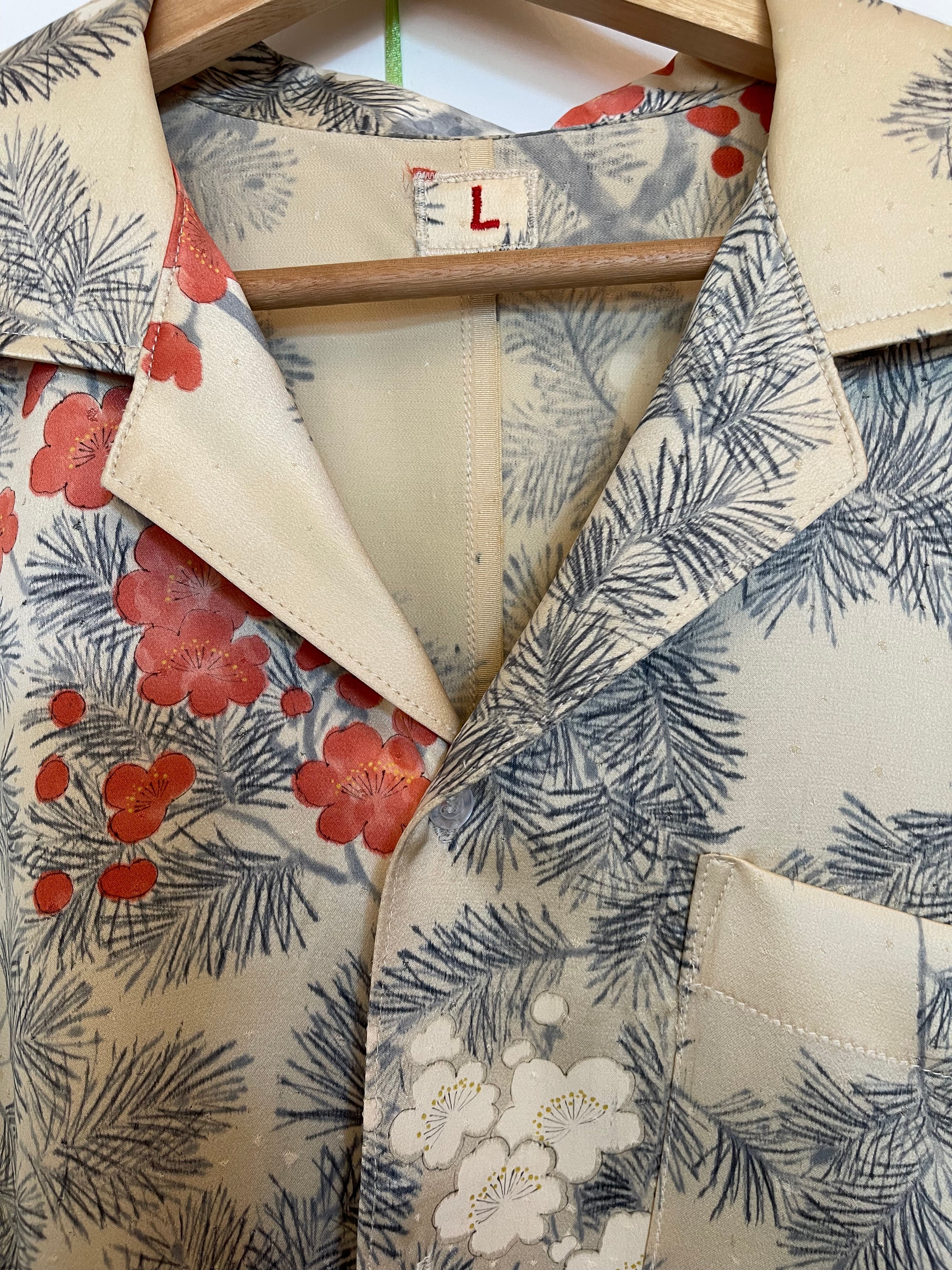 VINTAGE SILK KIMONO CHERRY BLOSSOM FABRIC SHIRT